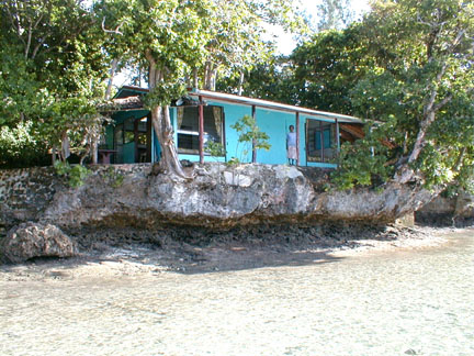 ABOUT NGARANDO Ngarando Resort is on the east side of Pigeon Island, facing Ngadeli Island across a lagoon. ACCOMMODATION There are two units available, and accommodation also in other buildings on the island, though these are not always available. The units each have a double and a single bed and a gas refrigerator and cooker, shower and flush toilet. Electricity is provided by solar panels and a generator. FOOD & COOKING You can choose whether to self-cater or let us prepare your meals for you. Naturally enough, meals are mostly based on what is readily obtainable in the islands, including fresh fruit and fish. Fresh bread is baked every day and there is a range of imported (European) supplies available, as well as what is available at the trading post. A market on Wednesdays and Saturdays can be found at the government sub-station, 3 kms away. MEDICAL CONSIDERATIONS There is a medical clinic 3 kms away, accessible by boat. WHAT YOU NEED The trading post on Pigeon Island can provide almost all your needs. However some cosmetic items are not available. COSTS Accommodation costs: Single SI $230.00 Double/Twin SI $370.00, Extra person SI $130.00 per night. Approximate exchange rates are: UK 10 to 1 (divide SI dollars by 10 to get UK rate), US 7 to 1, Australian 5 to 1. There is also a transfer fee from the airport to Ngarando, which is SI $1000 for two or more persons. For those who would like a long holiday of several weeks or more, the daily rate is reduced by 20 - 30 %. THINGS TO DO Wind-surfing, scuba-diving, snorkeling and fishing are entertainments provided by Ngarando. Reef walking, canoeing, visiting picturesque villages, table-tennis, videos, reading books, these are all available to our guests. DIVING We have equipment for 6 divers, two dive bottles per person. There are 30 miles of reef with all kinds of reef diving, drop-offs and lots of fish. Costs: SI$350 per person for two dives; SI$200 per person for one dive, or a night dive (includes tanks, fill, weight-belt, BCD, wet-suit if required and in available size;also includes 1 x 51tr mix petrol, enough to visit most sites near by. SI$20 surcharge per person if diving near a village (goes to village fund). Apart from the boat handler, as divemaster I can accompany divers if required. WHAT TO BRING There's no denying, Pigeon Island is remote. Bring that which you know you could not do without. Obviously, this includes any medication and anything else that may be difficult or impossible to replace easily.